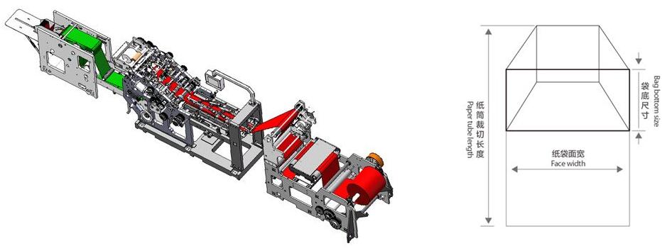 此設(shè)備是將原色或印刷好的卷筒紙由本機(jī)一次完成側(cè)邊上膠,折疊成微、紙筒切斷、底部涂膠、袋底成型、出袋,整機(jī)由計算機(jī)中央控制系統(tǒng)控制、觸摸屏顯示,伺服電機(jī)控制紙袋長短,可生產(chǎn)多種規(guī)格紙袋,卷簡方底紙袋機(jī)是統(tǒng)袋生產(chǎn)加工的首選設(shè)備。